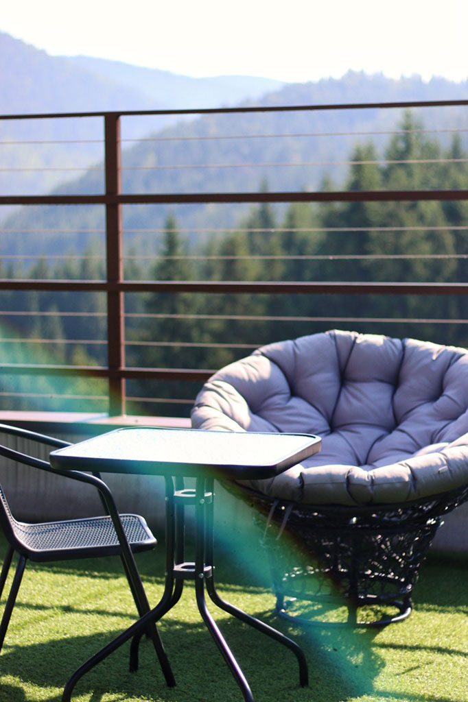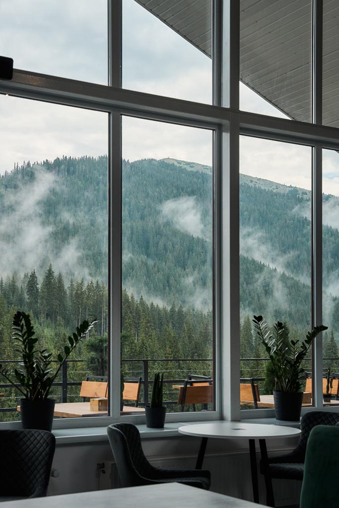 Світло наповнює простір номерів з ранку до вечора, створюючи відчуття відкритості й свободи. Кожен ранок починається з живої панорами Карпат без потреби виходити з кімнати, а кожен вечір — із заходів сонця над гірськими вершинами. Саме ці краєвиди формують атмосферу відпочинку, заради якої гості повертаються знову.