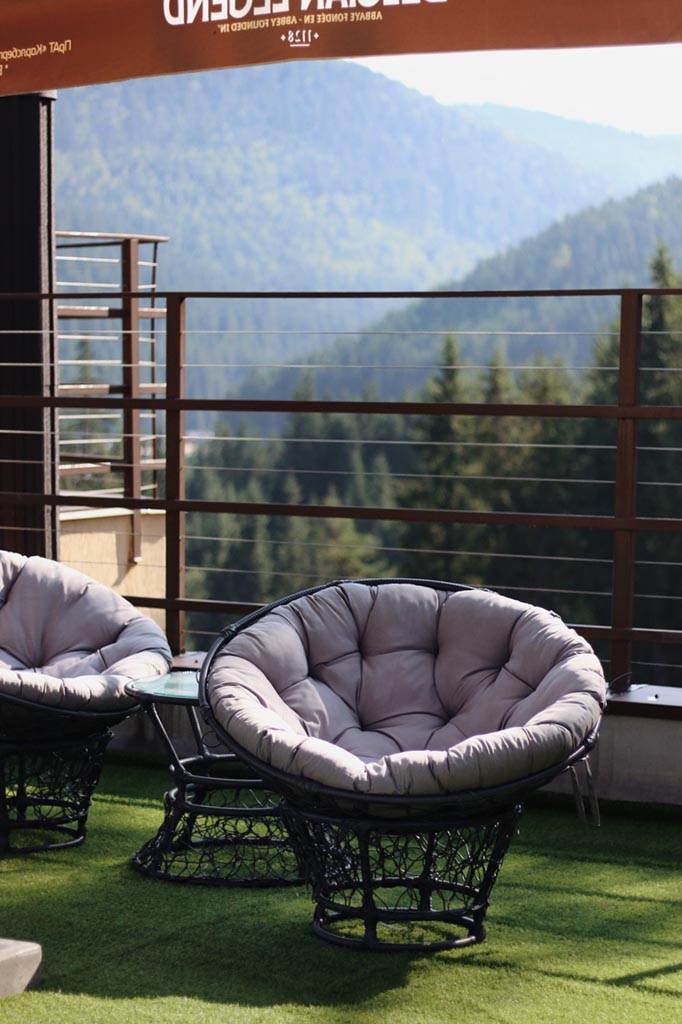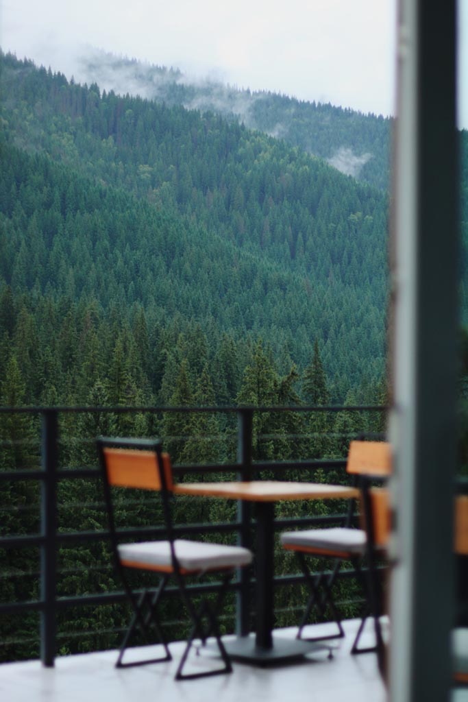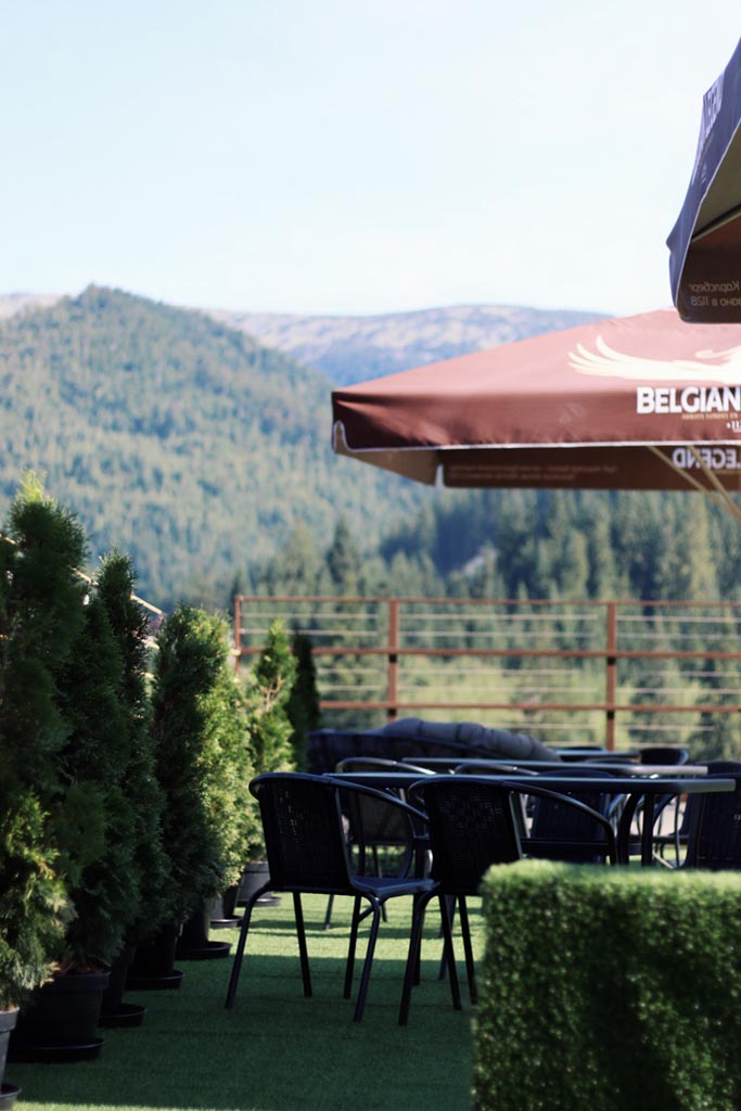 Головна перевага готелю — неймовірні краєвиди, які відкриваються просто з вікон номерів. Панорамні вікна дарують безперервний вид на величні гори Хом’як та Синяк, хвойні ліси та гірські схили, що змінюють свій настрій залежно від пори року. Взимку це засніжені вершини та світанки над білими хребтами, навесні — свіжа зелень і тумани між горами, влітку — насичені карпатські пейзажі, восени — теплі відтінки лісу.
