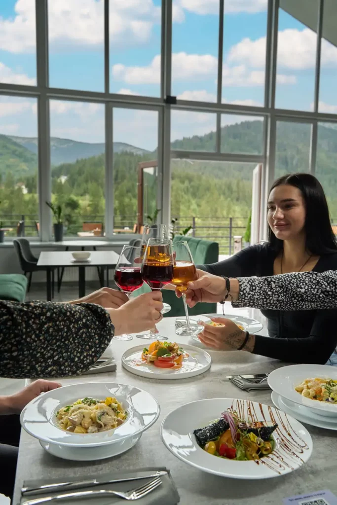 Вишукані страви карпатської та європейської кухні, натхненні природою гір та локальними традиціями. Атмосфера світла, простору й краєвидів доповнює кожну трапезу, перетворюючи її на окрему частину вашого відпочинку.