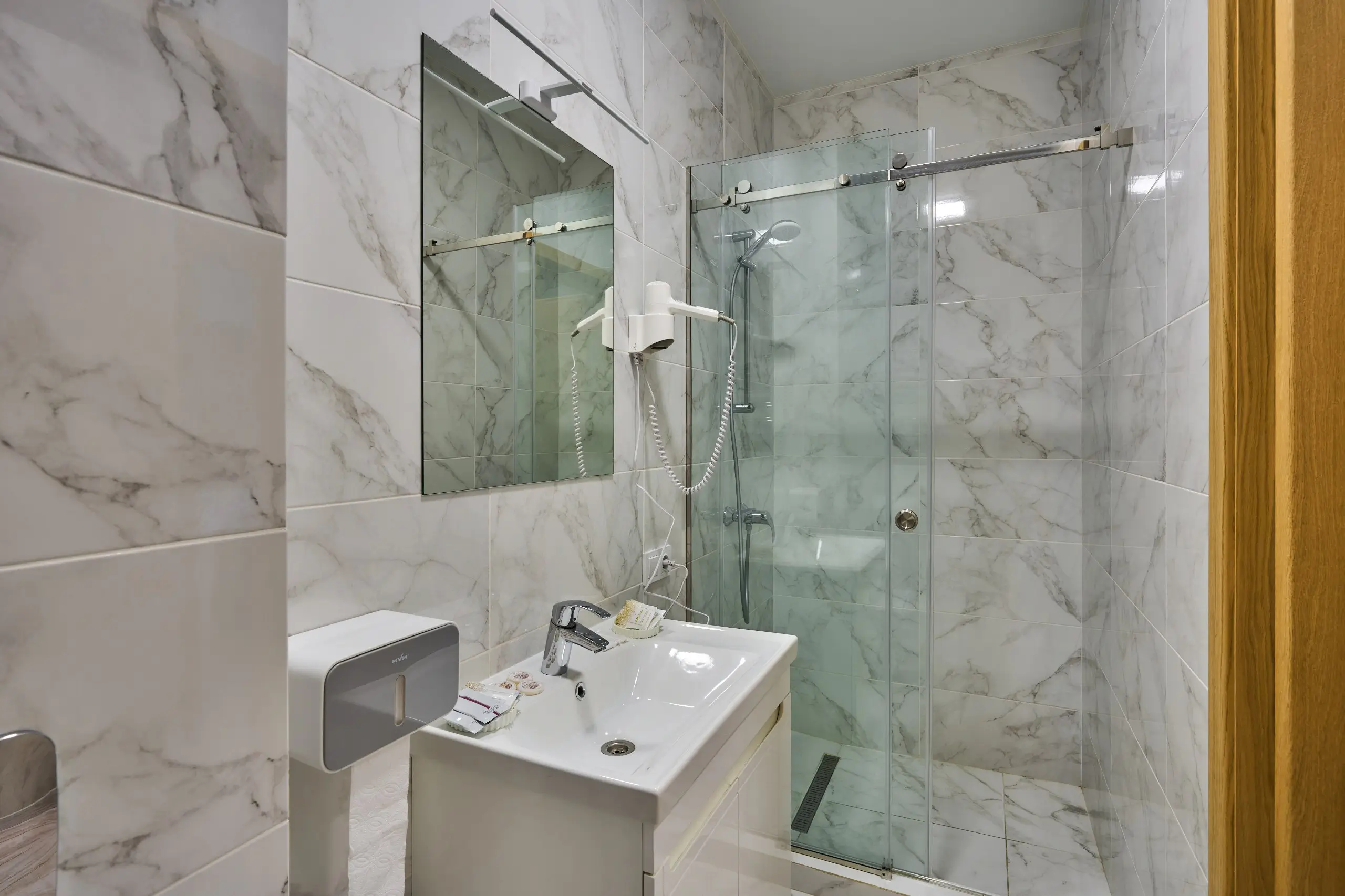 У номері передбачені телевізор, холодильник, сейф, електрочайник, набір посуду та швидкісний Wi-Fi.